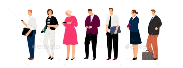 Description: Buy Business Characters Waiting in Line by ssstocker on GraphicRiver. Business characters. Isolated man woman with smartphones and documents. Businesspeople waiting line vector illustration