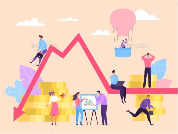 Description: Buy Economic Down Business Crisis, Worker Panic by elevartun on GraphicRiver. Economic down business crisis, worker panic concept vector illustration. Man and woman on chart looking for ways to s...