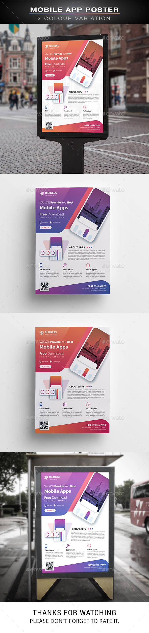 Description: Buy Mobile App Poster by madmindgraphics on GraphicRiver. Features : Psd Files 2 Color variation Easy Customizable and Editable Design Layout 28.8x40.4 inches with Bleeds 1 in...